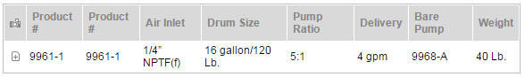泵管類型:16加侖/120 lb.